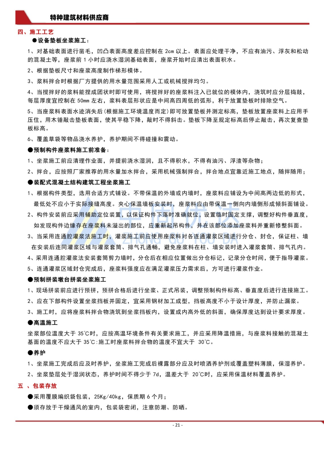 座漿料/封倉料